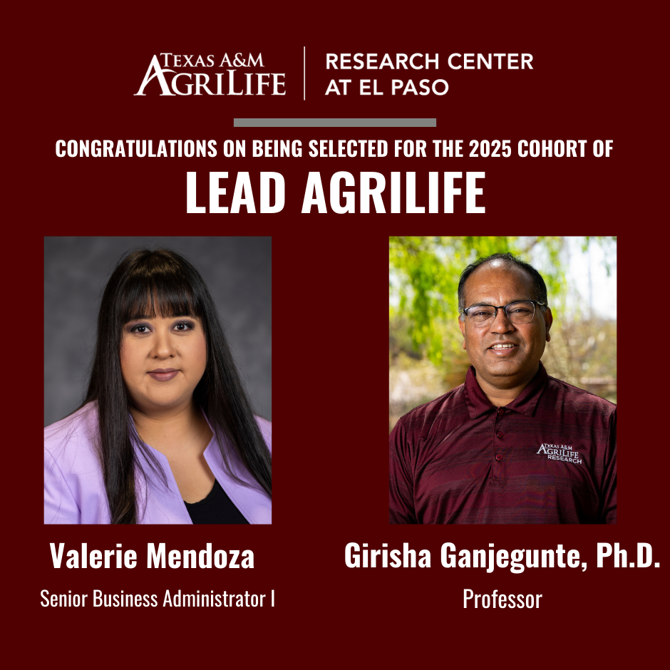 Two of our El Paso Center team members have been selected for Lead AgriLife! This is a huge honor, and we are thrilled for both Valerie and Dr. Girisha. Congratulations to you both, and to all of the 2025 LEAD AgriLife Cohort!
